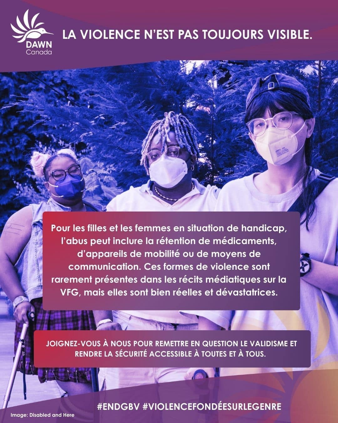La VFG est un axe central du pilier de recherche de DAWN Canada. Grâce à de nombreuses études et conclusions, DAWN Canada plaide pour des approches intersectionnelles et inter-handicaps afin de prévenir la VFG, en mettant l’accent sur les lacunes qui touchent les femmes, les filles et les personnes de genre divers en situation de handicap.
